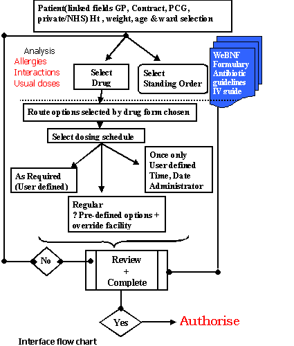 Another colleague suggested to me that surely the ideal interface would be the electronic version of what is used at present? Namely the WeBNF, linked as it can be to IV guides and formularies...Perhaps a most valid point which suppliers might like to consider. Combined with user defined personal formularies this could be a most interesting possibility.The system requirements will start with the generalities before progressing onto the specifics concerned with types of prescription, from in-patients to cytotoxic prescriptions.